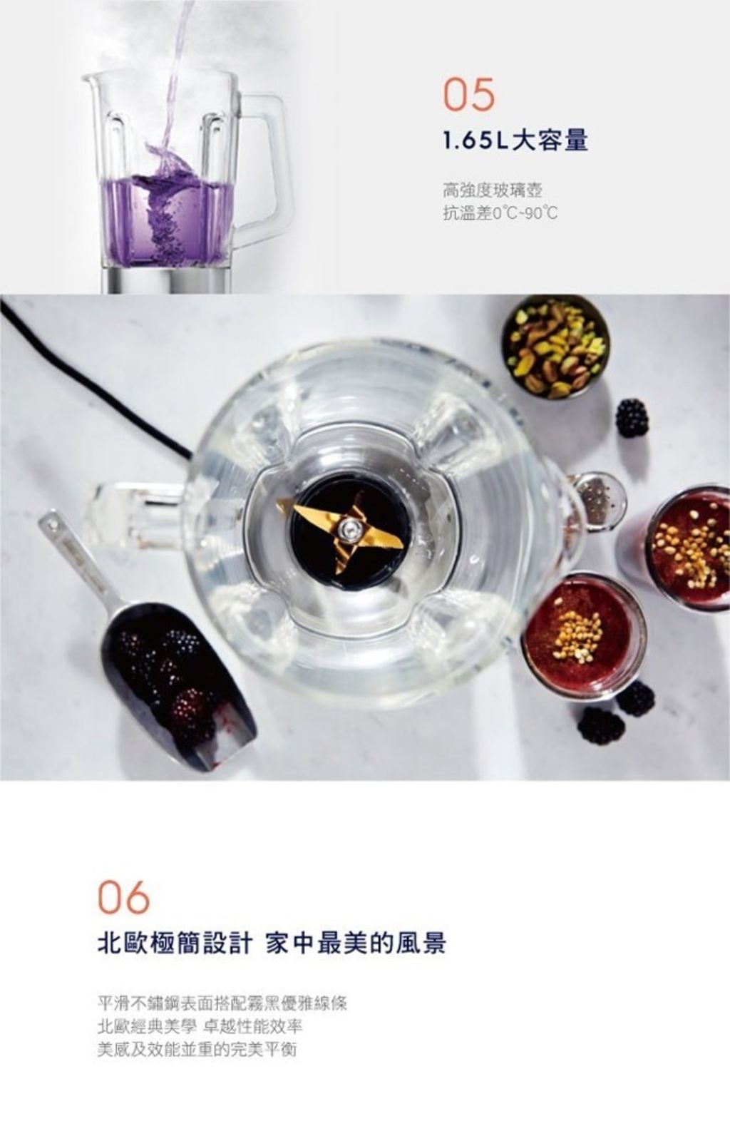 ●1.65L抗溫差高強度玻璃壺身